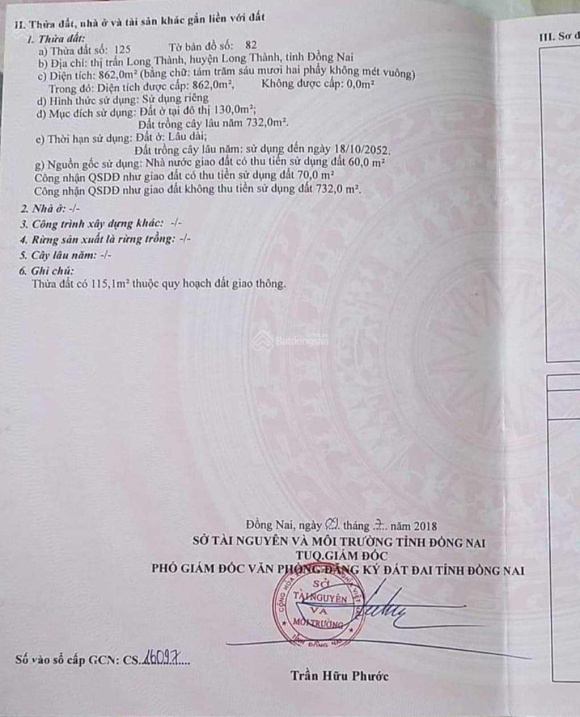 Thông tin khác: Chính chủ cần bán lô đất tại thị trấn Long Thành, Huyện Long Thành, Tỉnh Đồng Nai