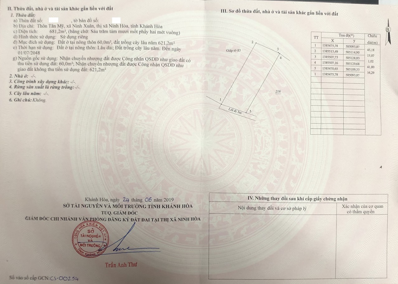 Thông tin khác: CHÍNH CHỦ CẦN BÁN LÔ ĐẤT VỊ TRÍ TẠI TÂN MỸ, XÃ NINH XUÂN , THỊ XÃ NINH HÒA, TỈNH KHÁNH HÒA ,CÁCH QL 26 CHỈ 50M