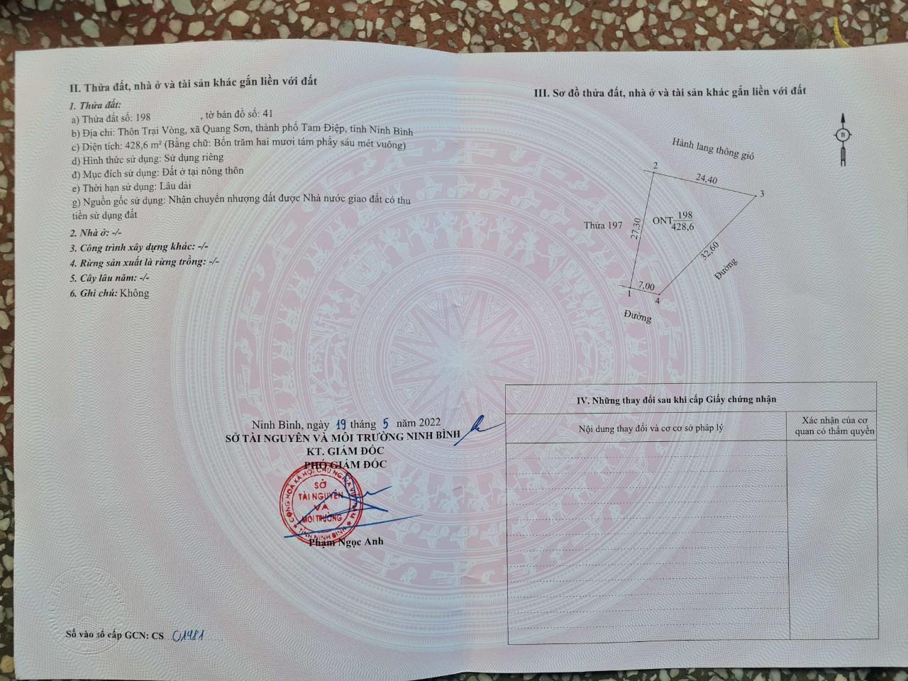 Thông tin khác: CHÍNH CHỦ CẦN RA ĐI LÔ ĐẤT Tại Quang Vũ, TP Tam Điệp – Giá Cực Mềm
