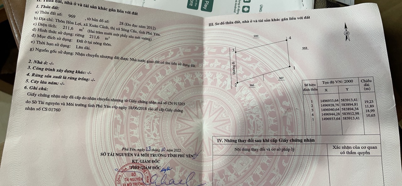 CHÍNH CHỦ ĐI ĐỊNH CƯ NƯỚC NGOÀI CẦN BÁN GẤP LÔ ĐẤT Tại TX Sông Cầu – Phú Yên.