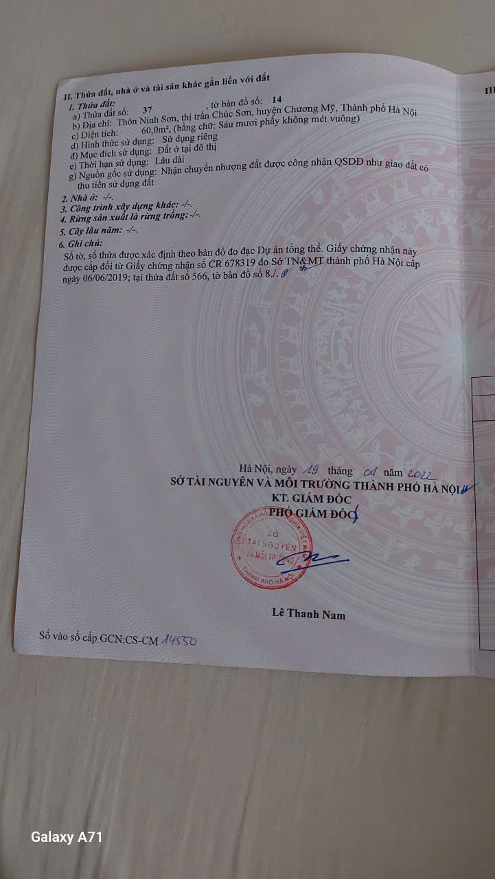 Thông tin khác: Chính chủ gửi bán 60m2 tại Ninh Sơn - Chúc Sơn -Oto tải tránh nhau