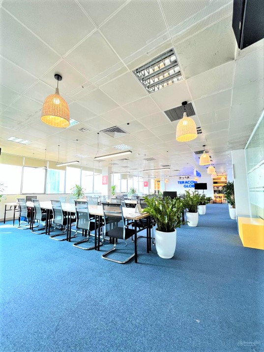 – Trần thạch cao hoàn thiện 2,7m, vách ngăn và cửa kính chia văn phòng, sảnh văn phòng và lễ tân riêng.