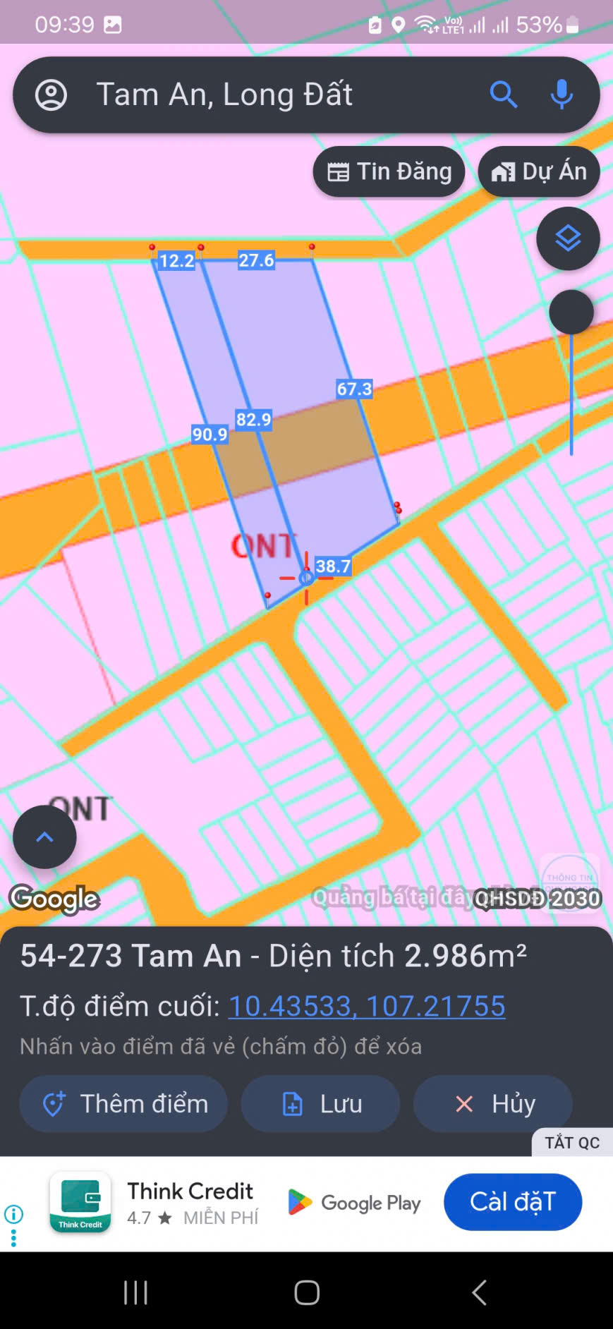 Chủ bán 3000mv 300 thổ cư , 2 mặt tiền trước sau khu dân cư tam an hcm