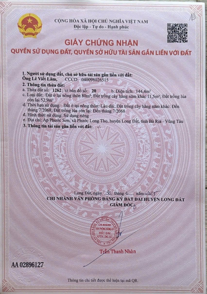 Thông tin khác: Chủ bán 8 nền liền kề phướclong thọ gần kcn đát đỏ
