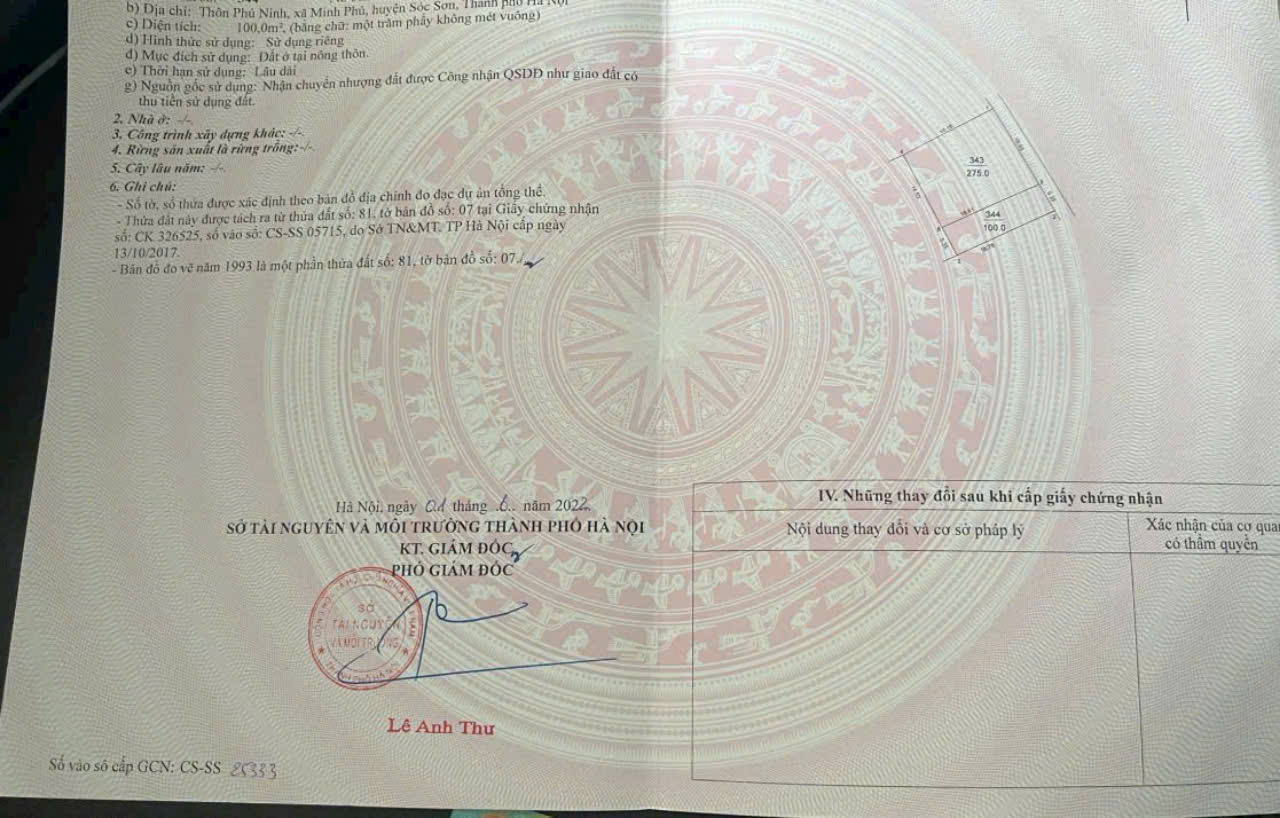 Thông tin khác: Chủ bán cắt lỗ - bán nhanh mảnh đất đẹp 100m2 tại Phú Ninh, Minh Phú, Sóc Sơn, Hà Nội