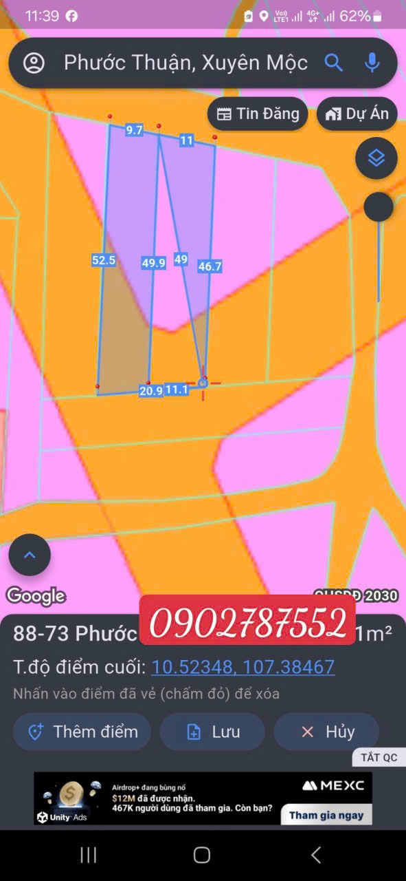 chủ cần bán đất mặt tiền đường 27/4 nối dài, xã hồ tràm, TPHCM DT 21*52 ( 1.092m2 ) 2 sổ, thổ cư, có bán lẽ 1 lô