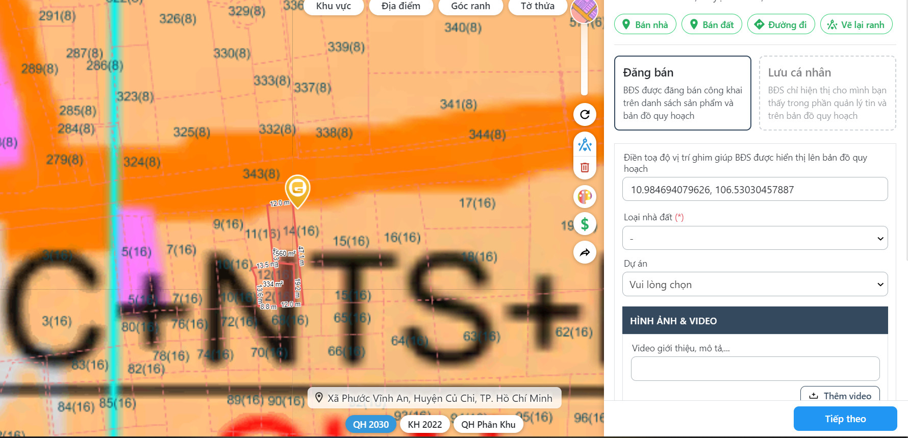 Thông tin khác: Chủ kẹt cần ra gấp lô đất Mt tỉnh lộ 8, xã Phước vĩnh an, củ chi