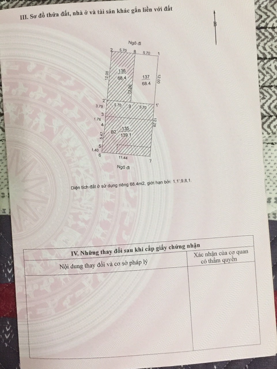 Chủ nhà – bán đất sổ đỏ chính chủ 68,4m2 nở hậu. Số 7/64 phố Yên Lạc, p. Vĩnh Tuy, q. Hai Bà Trưng, tp. Hà Nội.