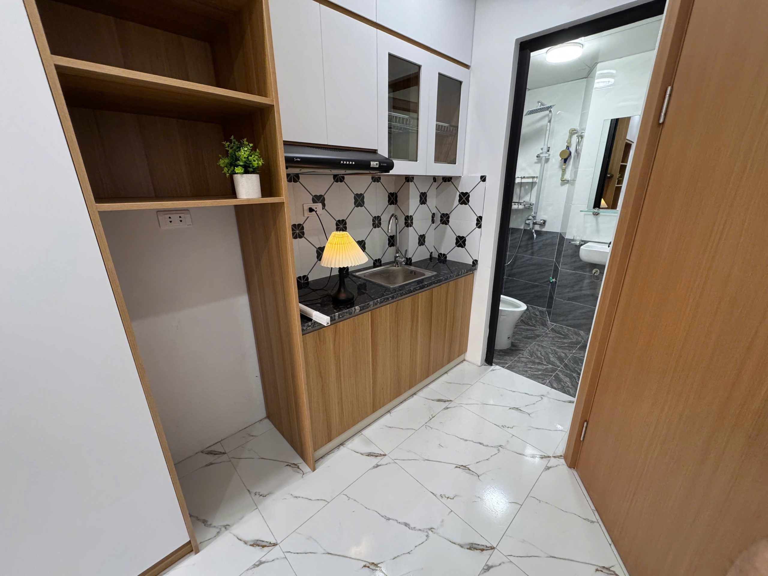 + Bếp từ hiện đại và hút mùi Sunhouse công suất cao nấu ăn thoải mái.