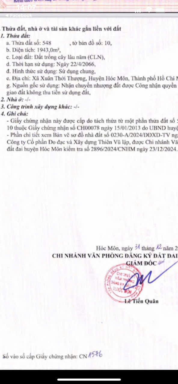 Thông tin khác: ĐẤT (50x39) MẶT TIỀN XUÂN THỚI THƯỢNG 03 (NAY XÃ BÀ ĐIỂM), HÓC MÔN