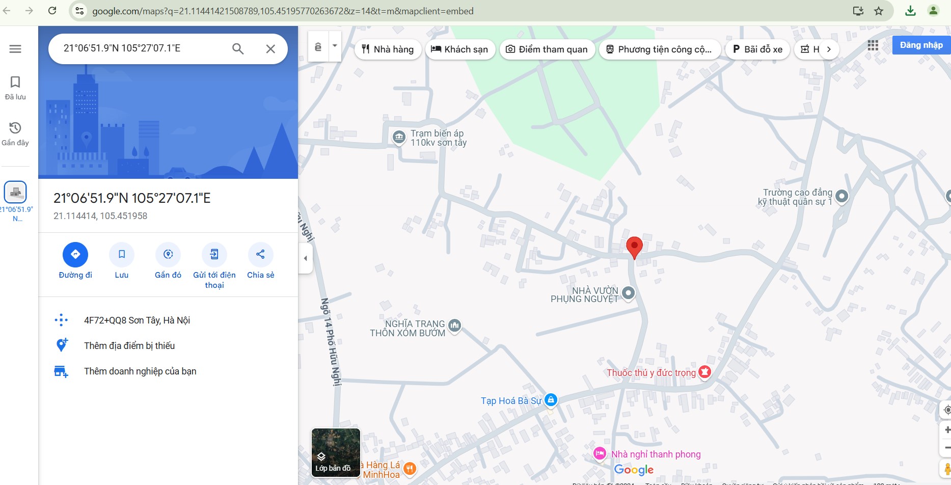 Địa chỉ: Đường Xuân Khanh, Xã Xuân Sơn, Sơn Tây, Hà Nội