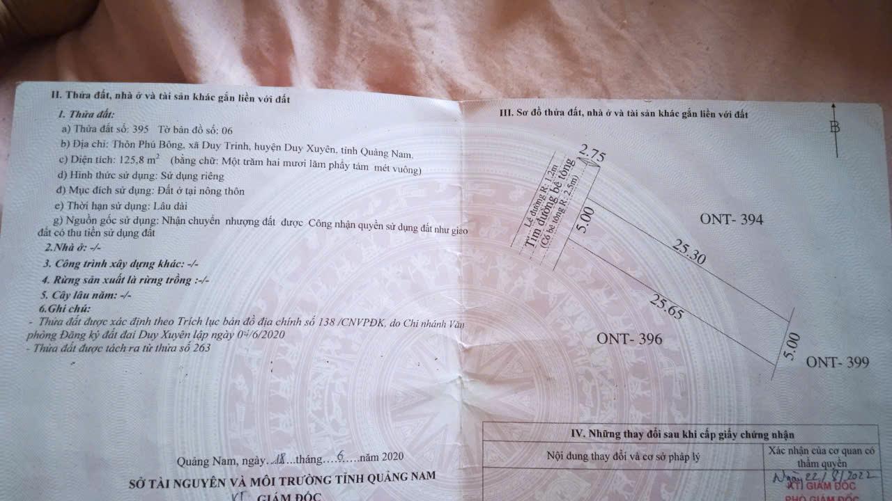 ĐẤT ĐẸP – CHÍNH CHỦ CẦN BÁN LÔ ĐẤT TẠI Phù Bông, Duy Trinh,Duy Xuyên, Quảng Nam