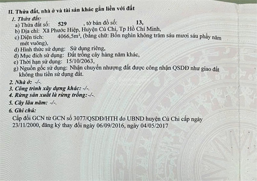 Thông tin khác: ĐẤT ĐẸP - GIÁ SIÊU TỐT - CHÍNH CHỦ Cần Bán Nhanh Lô Đất Vị Trí Tại Huyện Củ Chi, TP HCM
