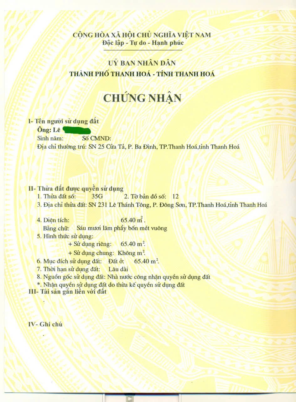 Thông tin khác: ĐẤT ĐẸP - GIÁ TỐT -CẦN BÁN GẤP LÔ ĐẤT TẠI SỐ 231 Lê Thánh Tông, P.Đông Sơn, TP. Thanh Hóa, Thanh Hóa
