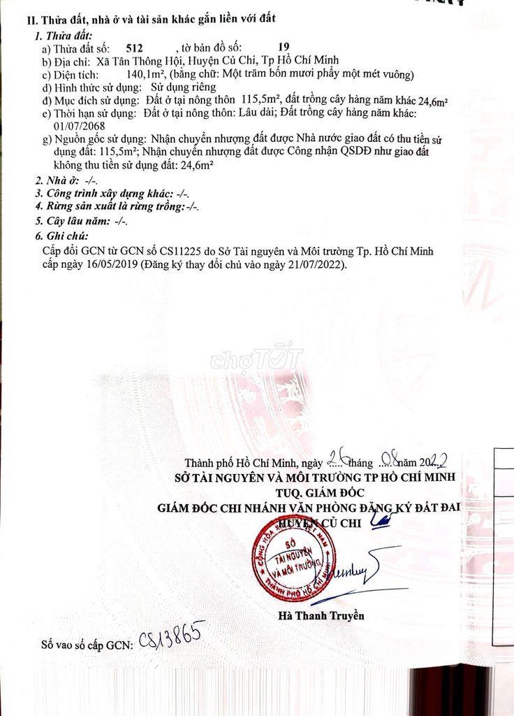 Thông tin khác: ĐẤT ĐẸP - GIÁ TỐT - CHÍNH CHỦ Cần Bán Gấp Lô Đất Đẹp Vị Trí Tại Huyện Củ Chi, TP HCM.
