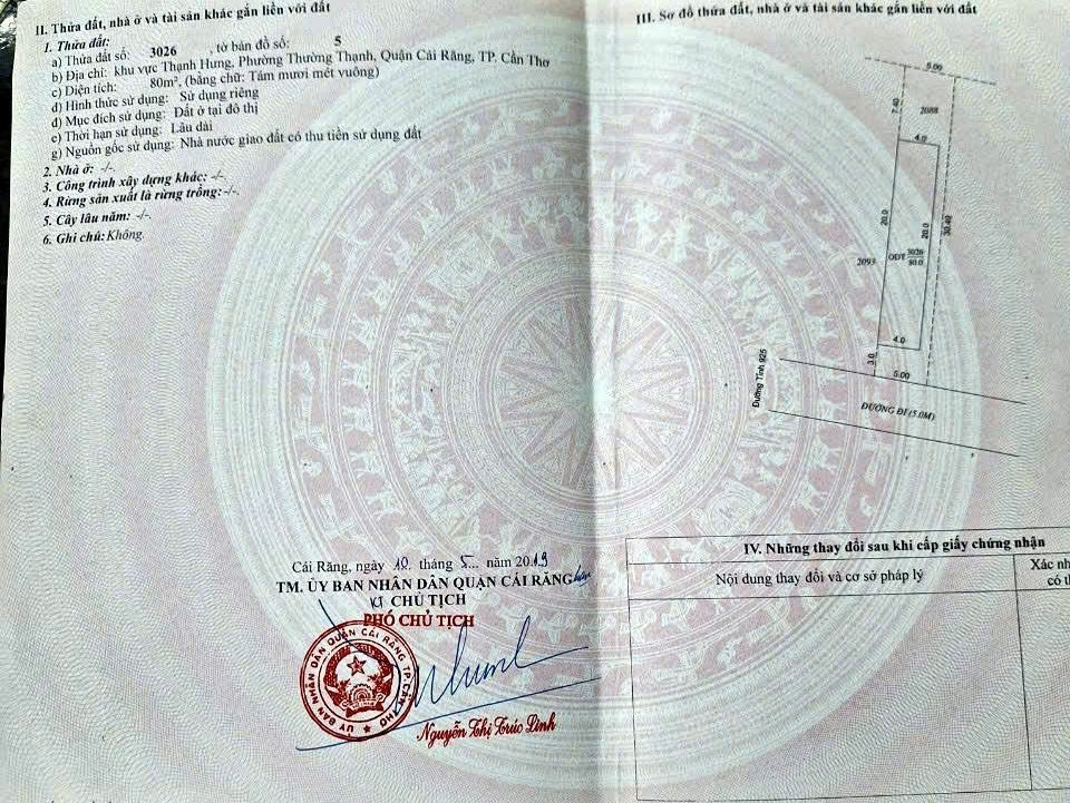 Thông tin khác: ĐẤT ĐẸP – GIÁ TỐT – CHÍNH CHỦ CẦN BÁN Tại khu vực Thạnh Hưng, Cái Răng, Cần Thơ.