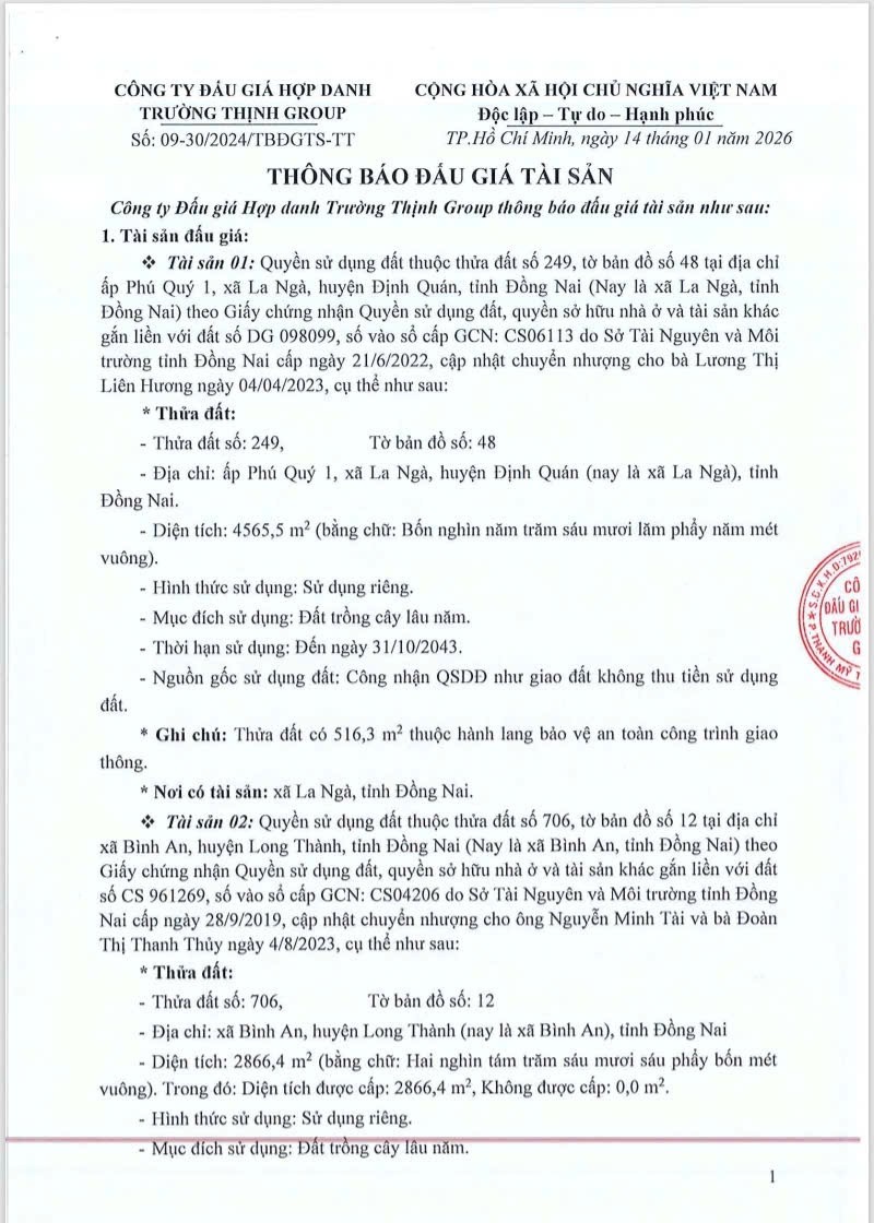 Thông tin khác: ĐẤT ĐẸP - MẶT TIỀN - Ngân Hàng BIDV Bán đấu Giá Công Khai Lô Đất Tại Xã La Ngà, Định Quán, Đồng Nai