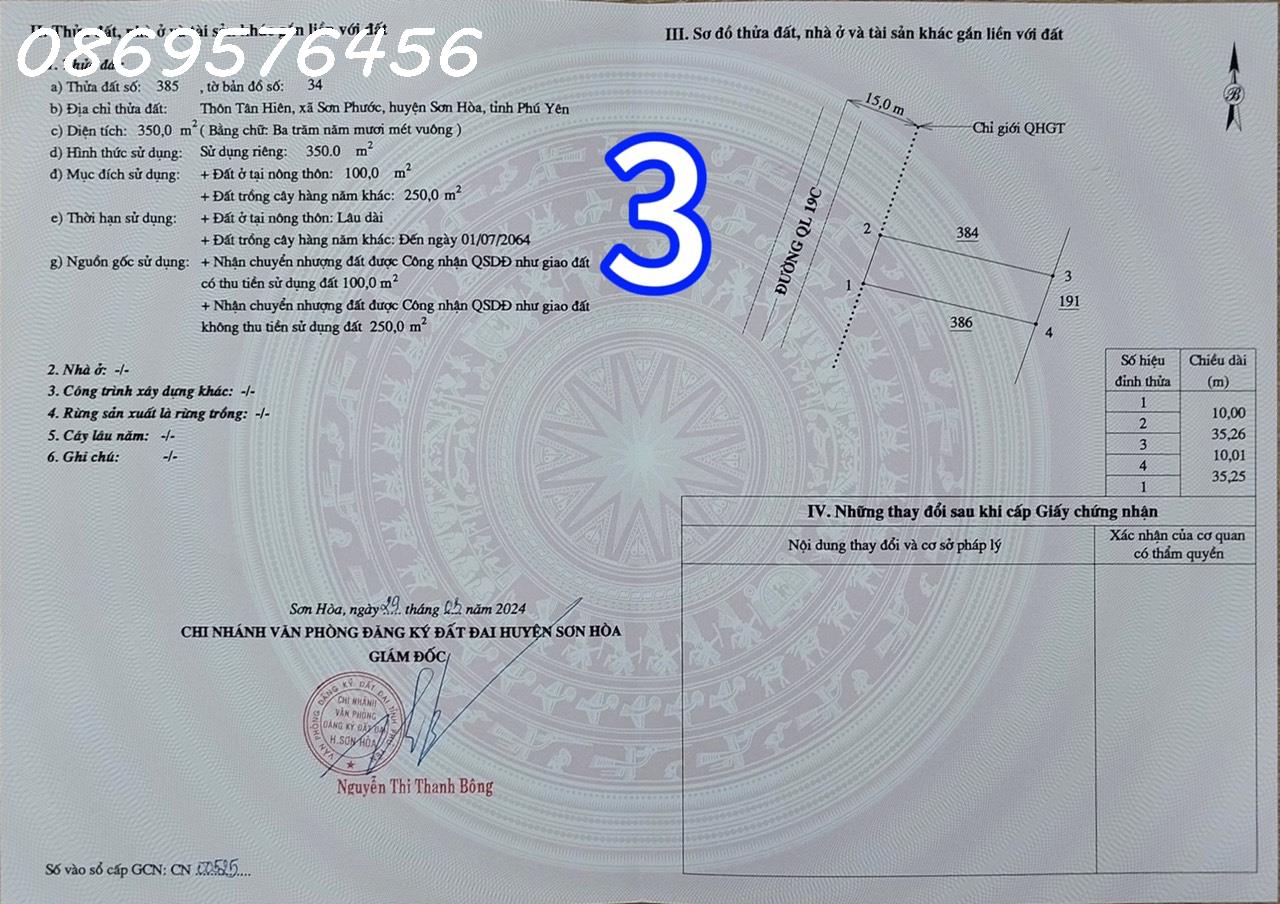 Thông tin khác: ĐẤT MẶT ĐƯỜNG QUỐC LỘ 19C, SƠN HOÀ, PHÚ YÊN