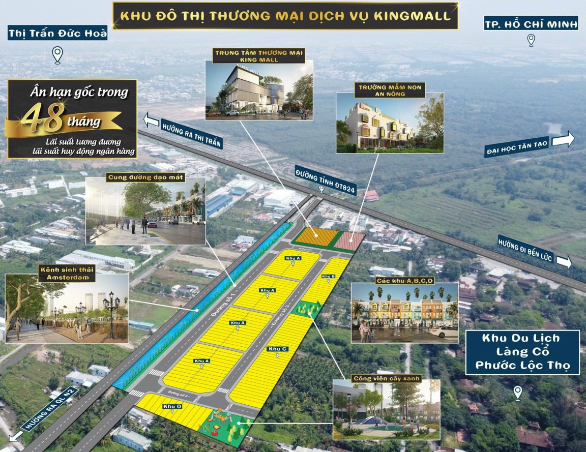 〽️ KING MALL trở thành chiếc cầu nối giữa Tp. HCM với các tỉnh ĐBSCL khi tiếp giáp Quốc Lộ N2 , Vành đai 4 và kết nối các tuyến giao thông huyết mạch cao tốc Tp. HCM – Trung Lương, tuyến ga Metro 3A, Cao tốc Bến Lức – Long Thành..