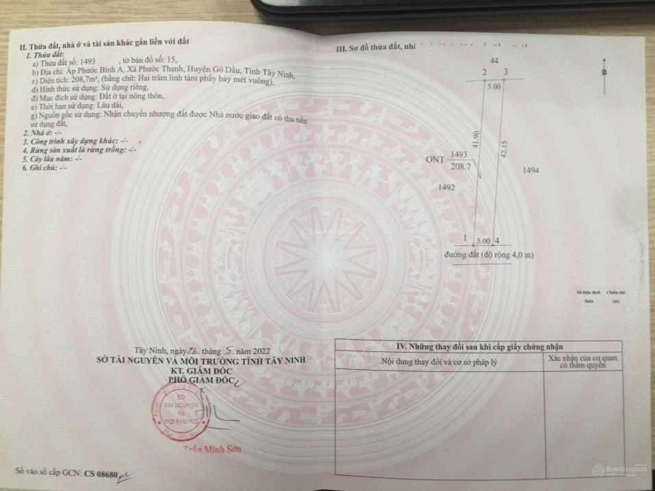 Thông tin khác: Đất nền Tây Ninh 5x42m full thổ cư, SHR, giá 730tr