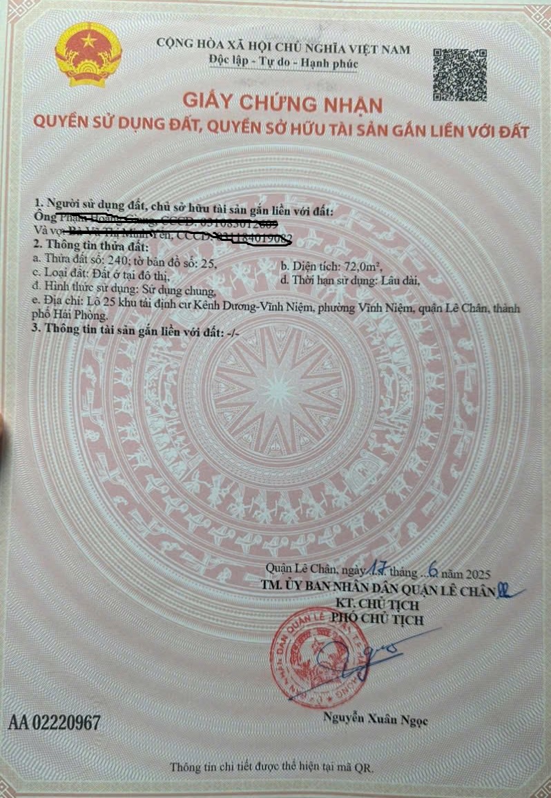 Thông tin khác: Đất phân lô đối diện AEON - Vĩnh Niệm, 72m, đường 12m, giá 10.44 tỉ cực đẹp