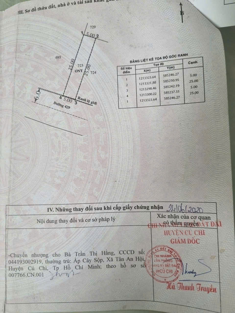 Thông tin khác: Đất thổ cư mặt tiền đường nhựa 429, xã Phước Vĩnh An dt 125m2 giá 2,5 tỷ