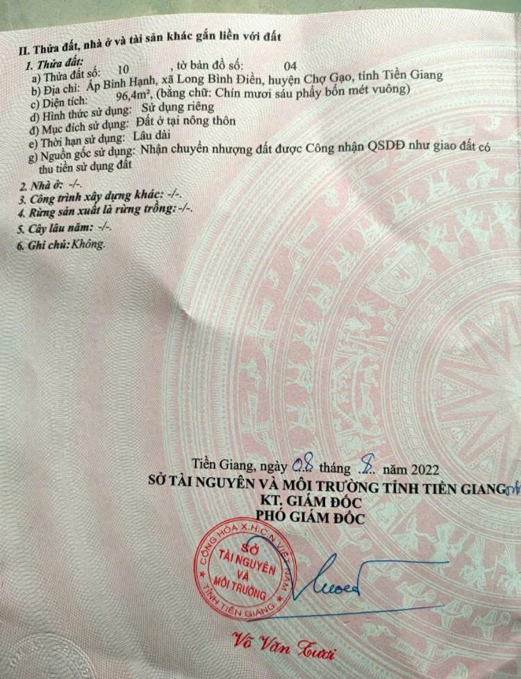 Thông tin khác: Em cần ra đi miếng đất tại xã Long Bình Điền ,Tiền Giang cũ , nay là Xã Chợ Gạo , Tỉnh Đồng Tháp mới