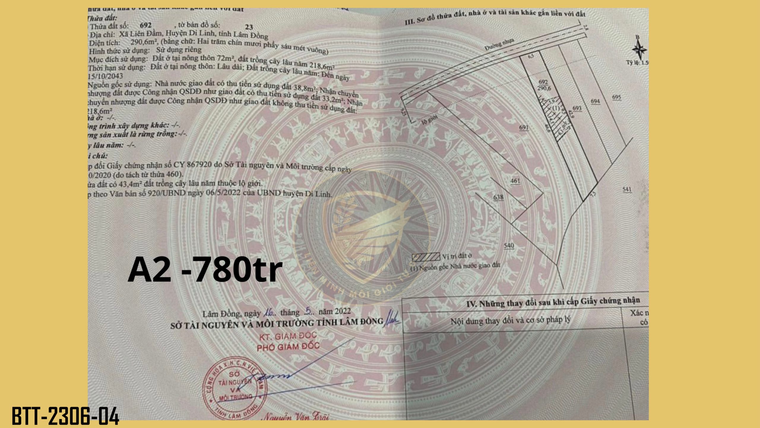 Thông tin khác: Gần 300m2, đất Di Linh - Lâm Đồng, sổ riêng, đất ở nông thôn, giá chỉ 780 triệu