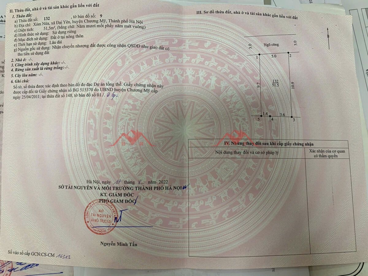 Thông tin khác: GIÁ 2,460 TỶ ĐẤT ĐẠI YÊN-CHƯƠNG MỸ D/T:51,5M