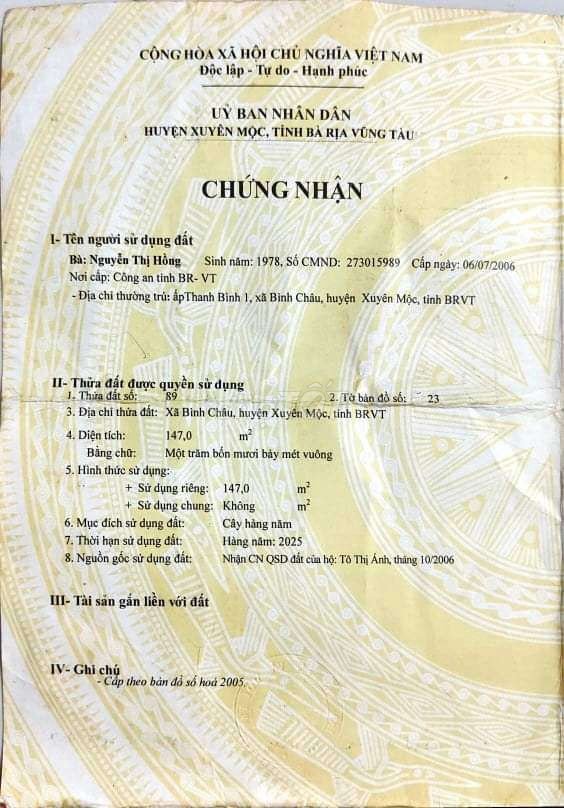 HẠ GIÁ TỪ 1,3TY CÒN 1,2TY CHÍNH CHỦ BÁN 147M2 ĐẤT MT GIÁ TỐT NHẤT KHU VỰC XUYÊN MỘC