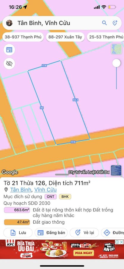 Thông tin khác: Hàng đầu tư MT đg M Ông Tân Bình vĩnh Cửu 711m2 sổ riêng sẵn 100 thổ chỉ 4Ty398.