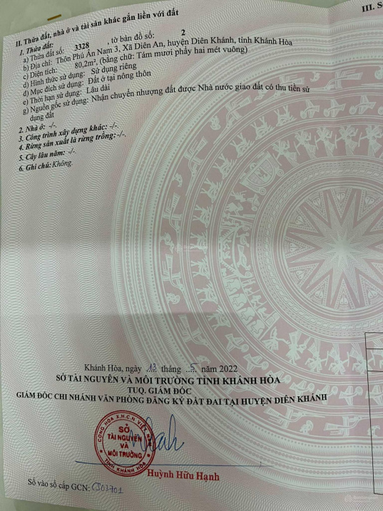 Thông tin khác: Kẹt tiền bán lô đất đường xóm Cốm, Diên An, Diên Khánh, cách 23 Tháng 10 chỉ 200m. LH: 0935 834 325