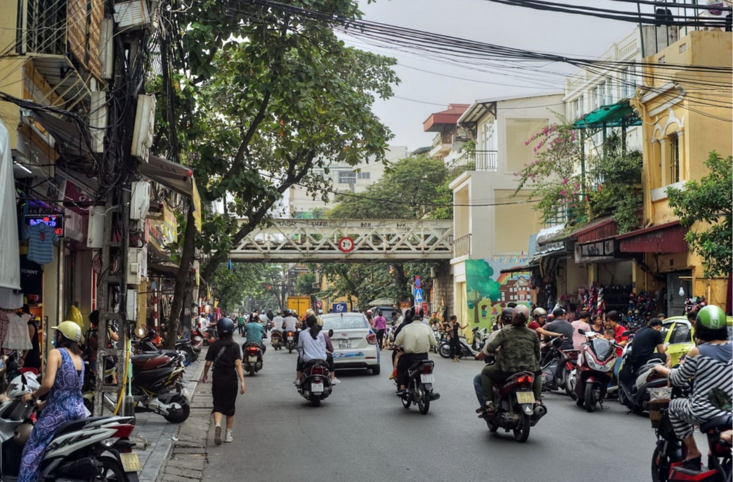 Mặt phố Hàng Giấy – trung tâm Phố Cổ Hoàn Kiếm, khu vực kinh doanh nhộn nhịp bậc nhất, khách du lịch tấp nập ngày đêm.