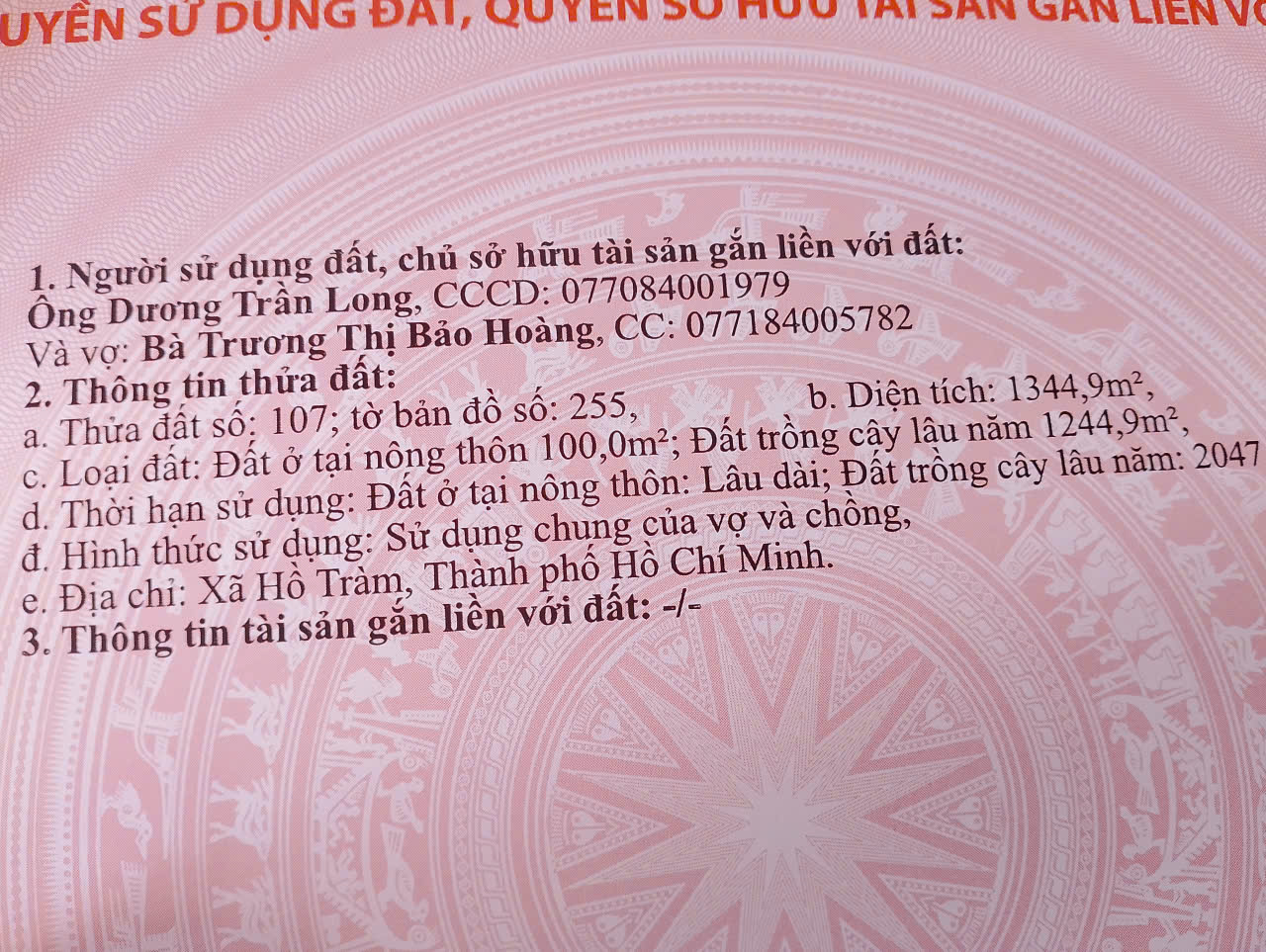 Thông tin khác: Mình có đất xuyên mộc 1.344m2 cần bán