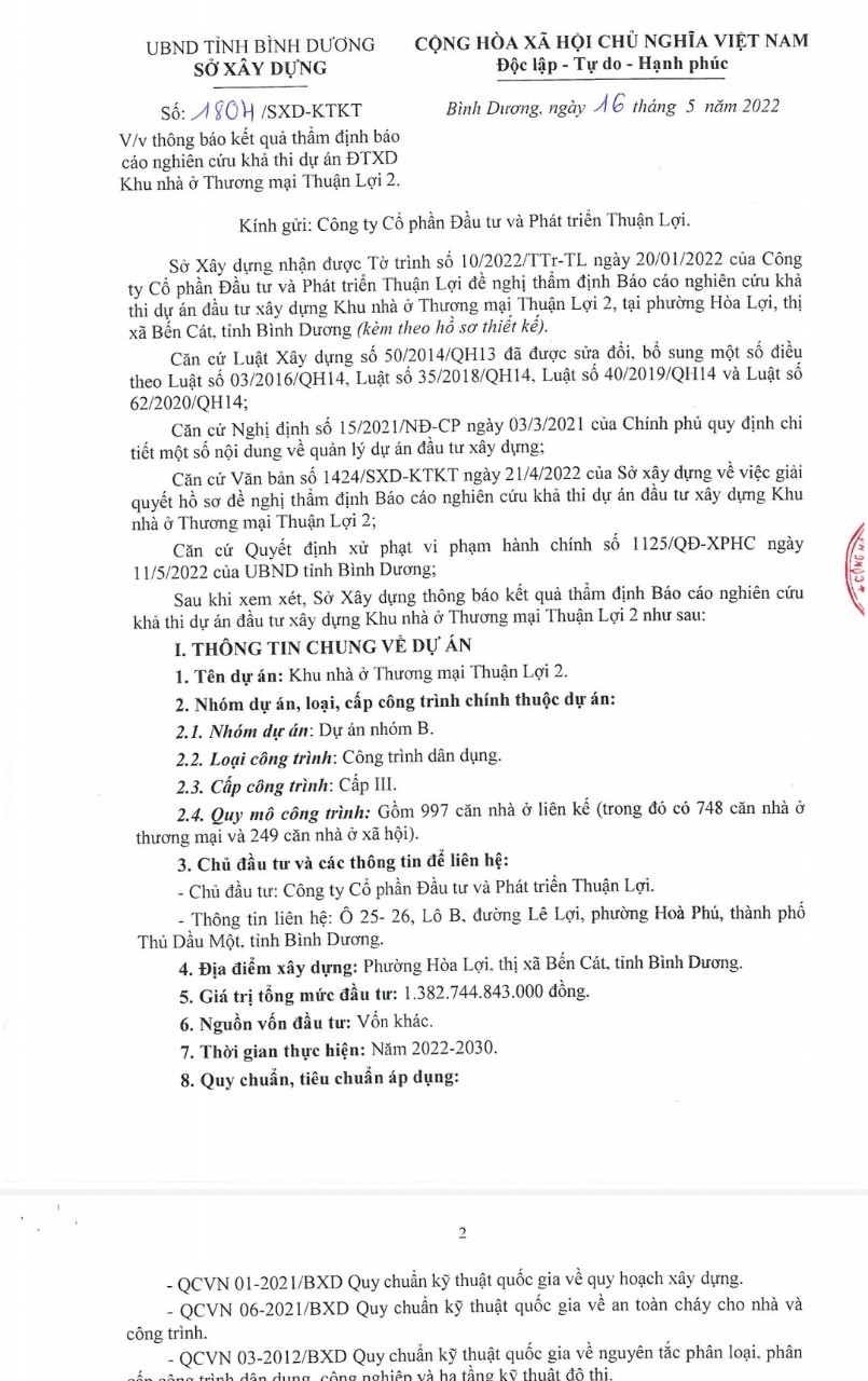 – Chủ đầu tư: Công ty CP Đầu tư và Phát Triển Thuận Lợi.