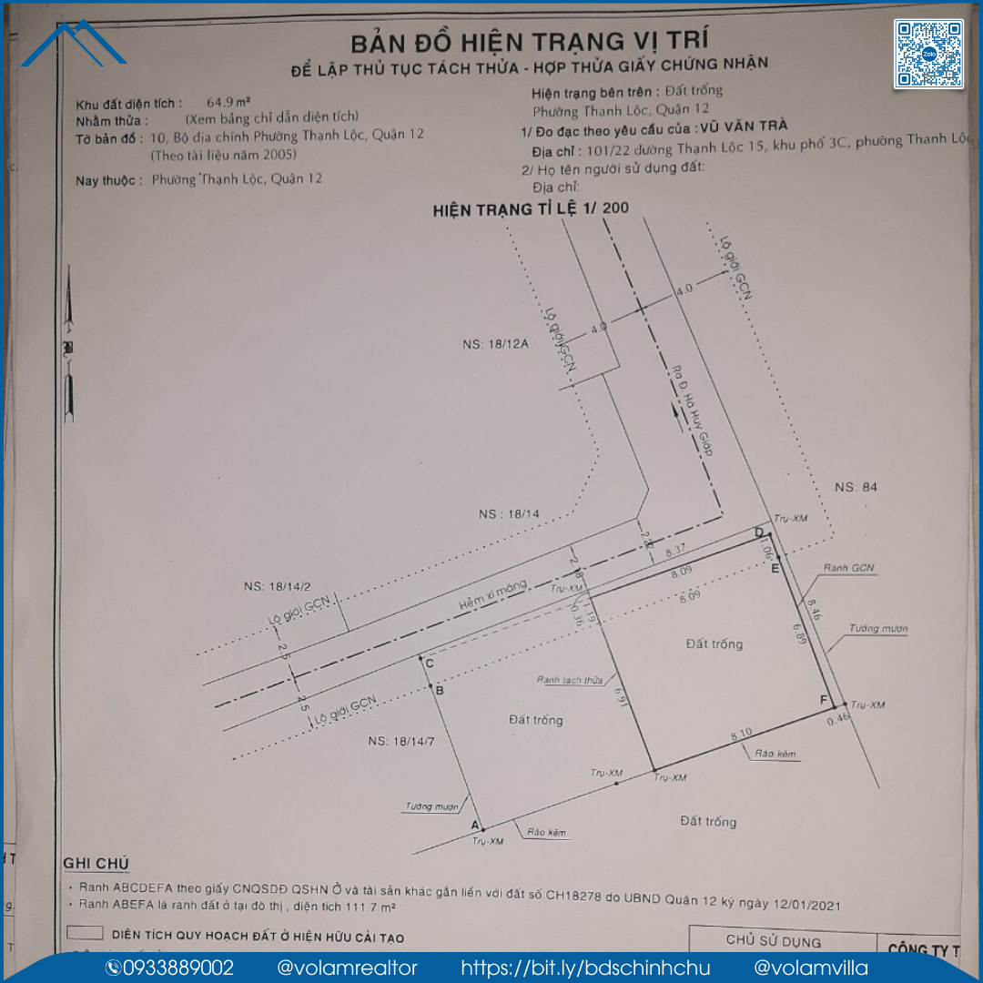 [NC] VLR – Đất 17mx 9m HẺM XE HƠI 1/ đường Thạnh Lộc Xây Dựng được 4 căn Nhỏ 4.5 tỷ