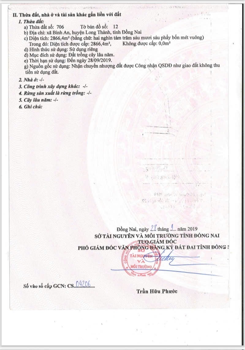 – Thửa đất số 706, tờ bản đồ: 12