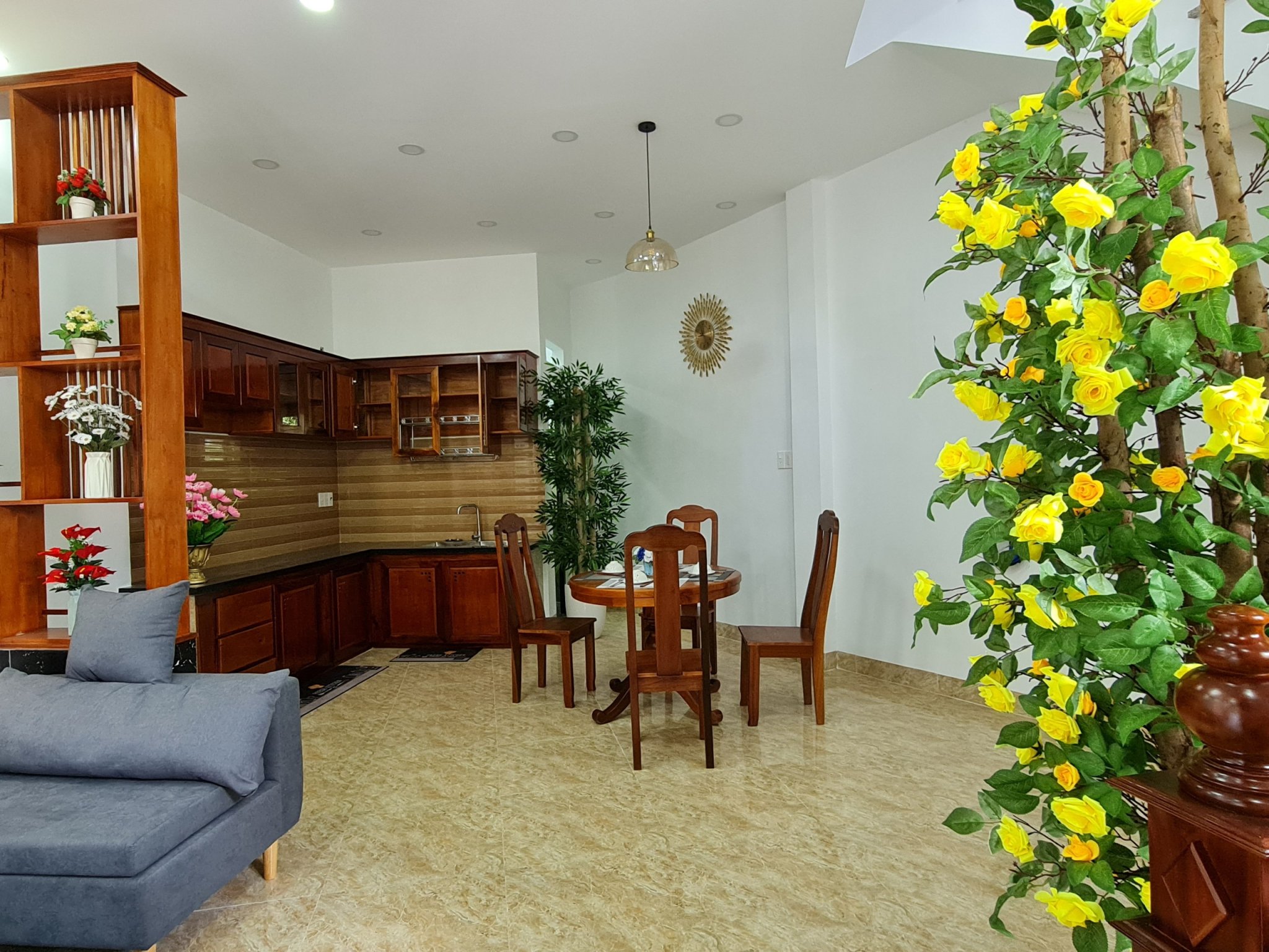 + Nhà Thiết kế hiện đại, hệ thống camera, bồn năng lượng mặt trời, nội thất cơ bản: tủ gỗ, kệ gỗ, bàn ăn gỗ, ghế sofa rèm cửa