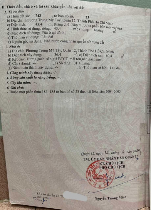 Thông tin khác: Nhà gác lửng mới ken, hẻm 3.5m, phường Trung Mỹ Tây, Quận 12, DT: 3.95 * 12M (giá: 3ty300 TL)