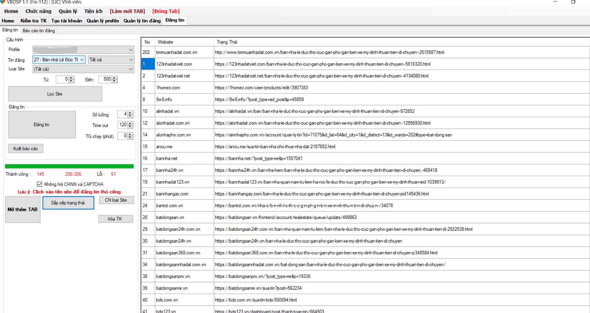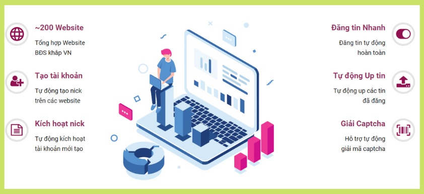 Thông tin khác: Phần mềm VRP rao vặt đa lĩnh vực chứ không chỉ riêng về bất động sản, tích hợp sẵn 90 trang web.
