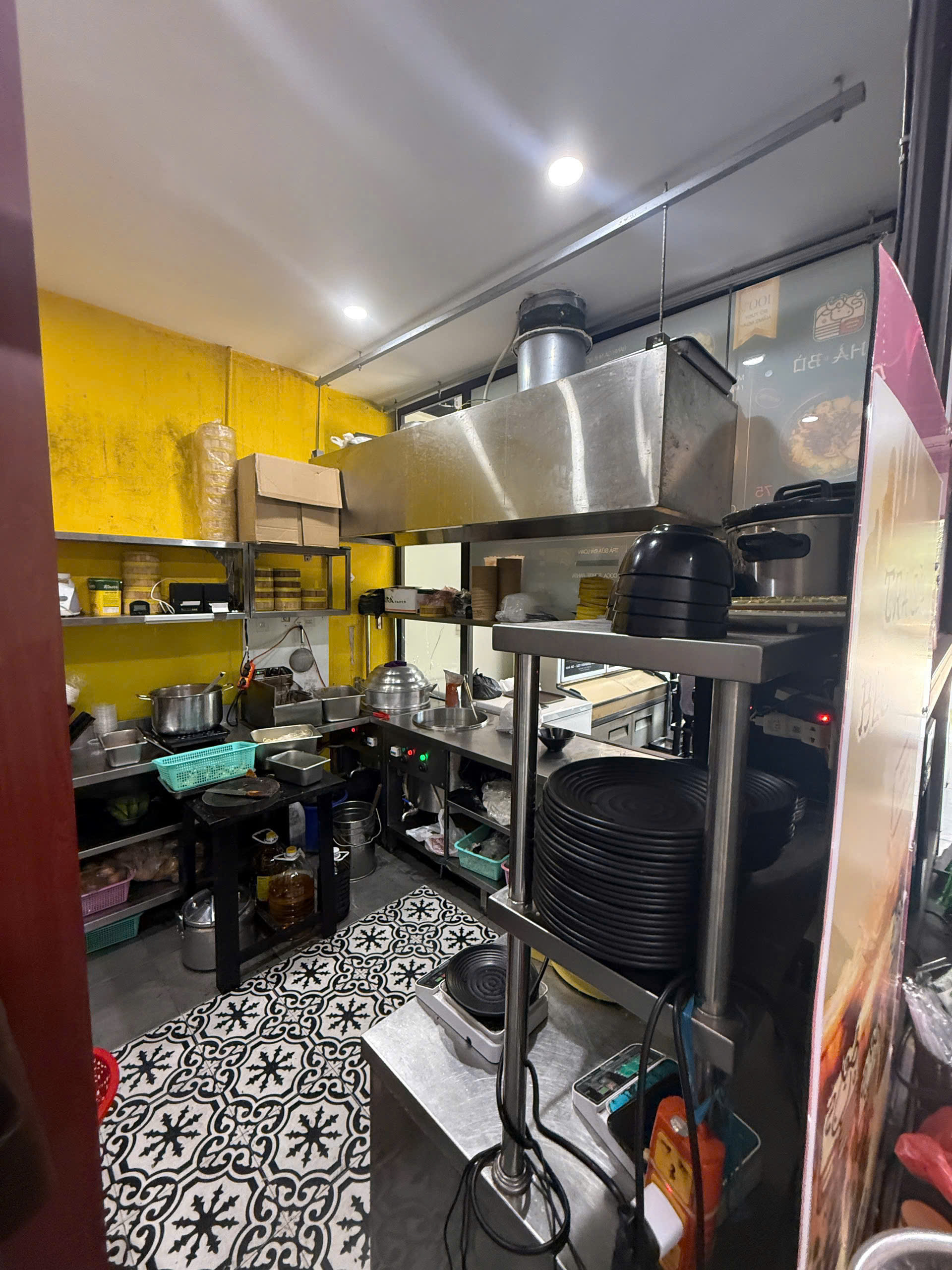 * Gồm: 3 bếp điện phở, bếp hấp công nghiệp, tủ đông 3 chức năng, tủ bảo ôn lớn, 2 điều hoà mới, hệ thống hút mùi mạnh.