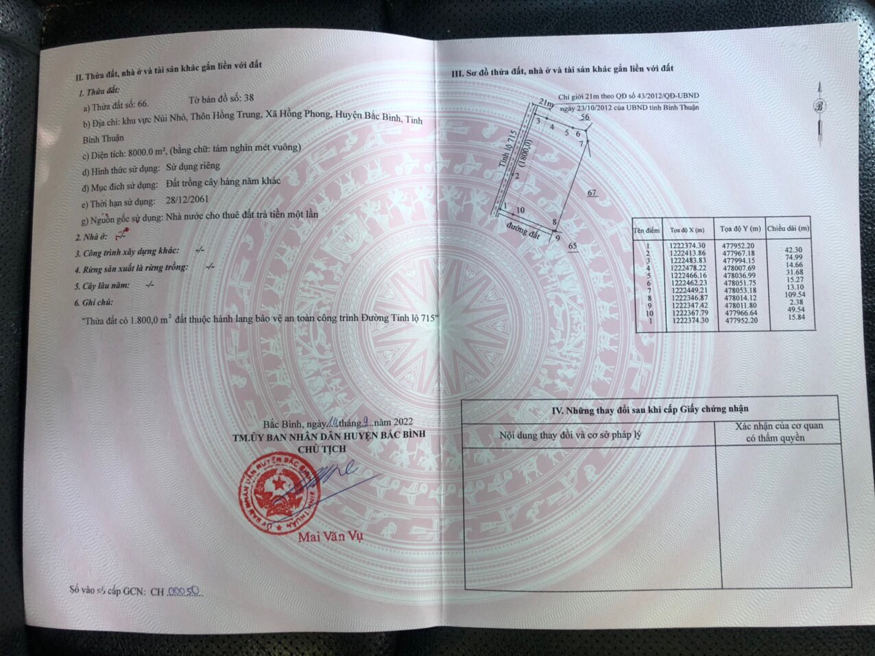Thông tin khác: Siêu phẩm 8000m2 đất mặt tiền dài 115m đường nhựa 715, Xã Hồng Phong, Bắc Bình, Bình Thuận