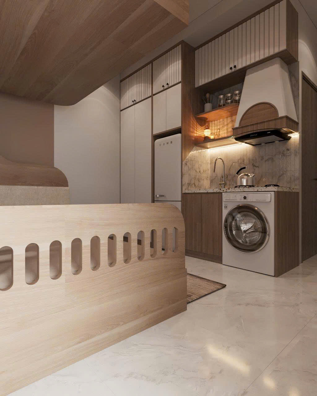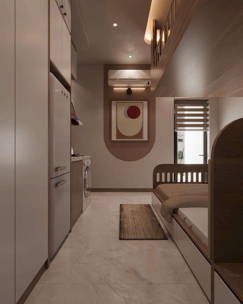 + Tầng 1: Thông sàn để xe siêu rộng